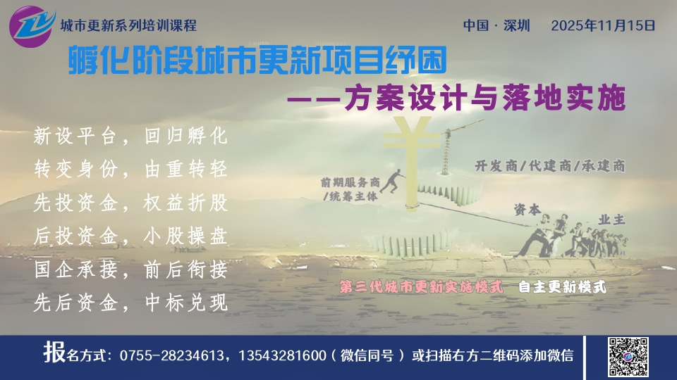 本次培训将在城市更新网超十年研究和实践的基础上,站在自主更新的视角,谈谈城市更新网对需纾困项目的纾困方案设计和落地实施。